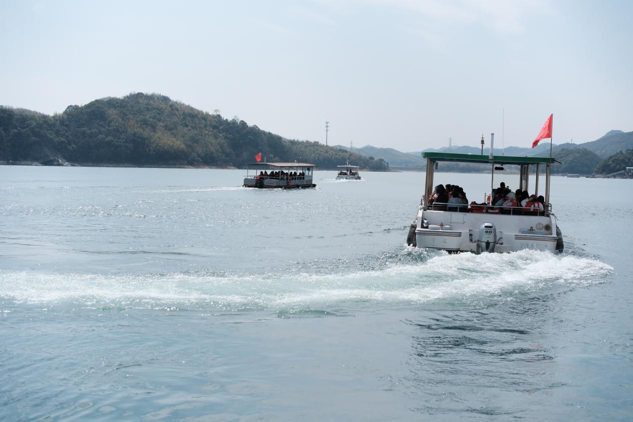 第一站,隊(duì)伍分批乘船登上湖心島——猴島,近距離觀賞野生獼猴群的靈動(dòng)可愛。島上不僅有“龍女獻(xiàn)珠”“九龍神龜”等人文景觀,更有獼猴嬉戲,引得大家紛紛拿出手機(jī)拍照留念。漫步環(huán)島小道,湖光山色盡收眼底,微風(fēng)拂面,令人心曠神怡。